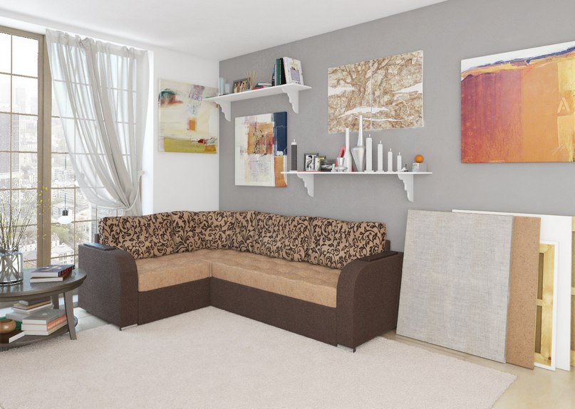 В данном примере демонстрируется угловой диван в 3D окружении, заказанная мебельной фабрикой. Применяется в буклетах, каталогах, презентациях. Стоимость подобного проекта зависит от колличества и сложности моделей, а так же качества текстур.